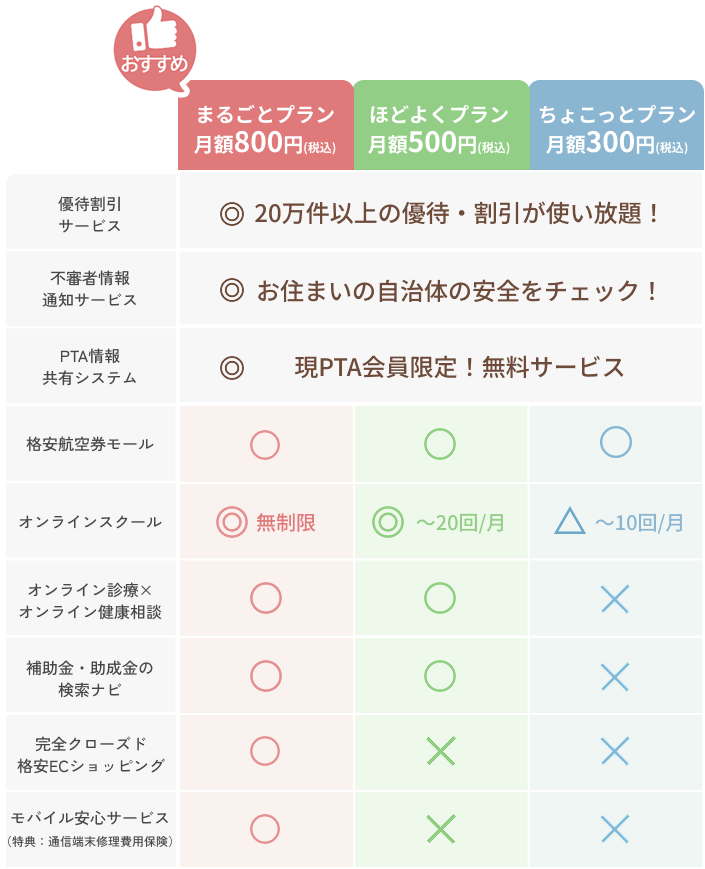 ※現PTA会員限定のサービスとなります。